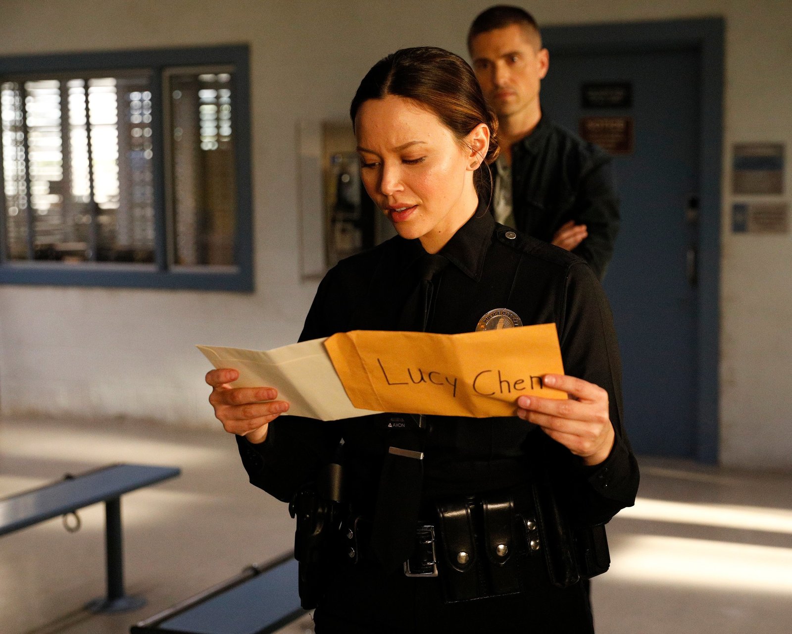 AufarbeitungLucy Chen (Melissa O´Neil) und Jackson West (Titus Makin Jr.) hören gespannt dem Ausbilder zu.Bild: © ZDF und Christopher Willard.