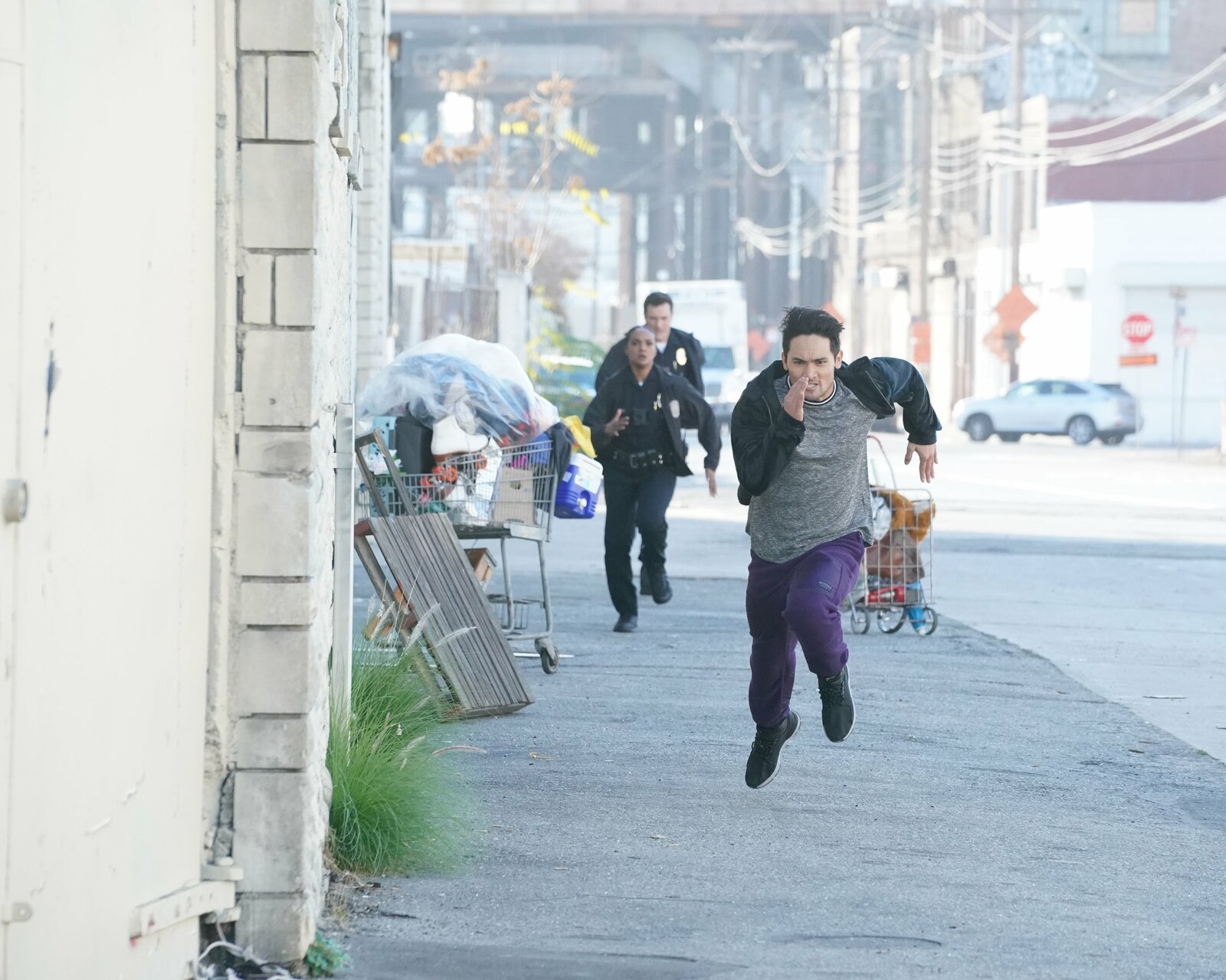 OpferJohn Nolan (Nathan Fillion) und Lucy Chen (Melissa O´Neil) verfolgen den Tatverdächtigen Cheetah (Chris Cortez).Bild: © ZDF und Richard Cartwright.