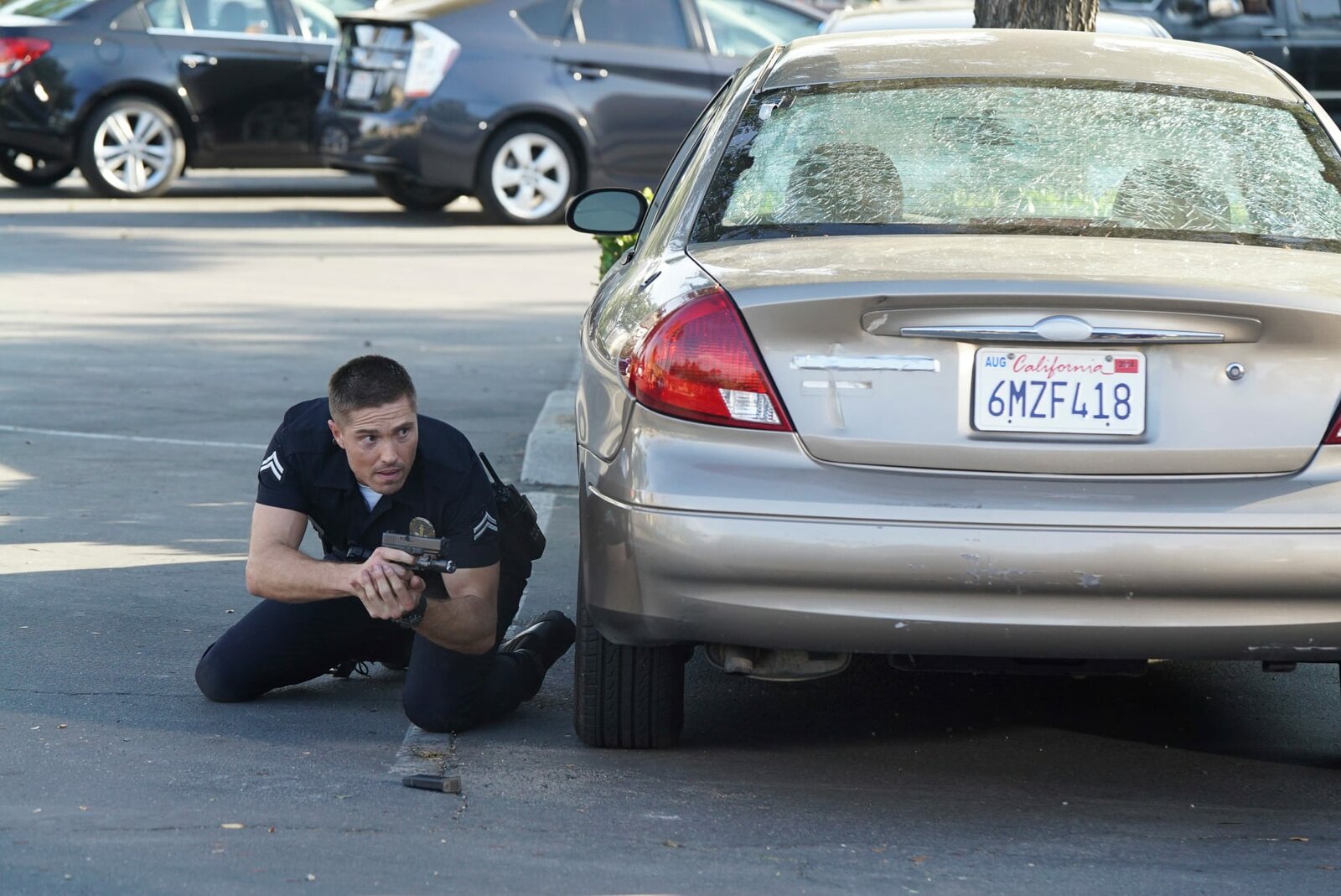Der TauschTim Bradford (Eric Winter) geht in Deckung vor dem Schusswechsel mit einem Flüchtigen.Bild: © ZDF und Eric McCandless.
