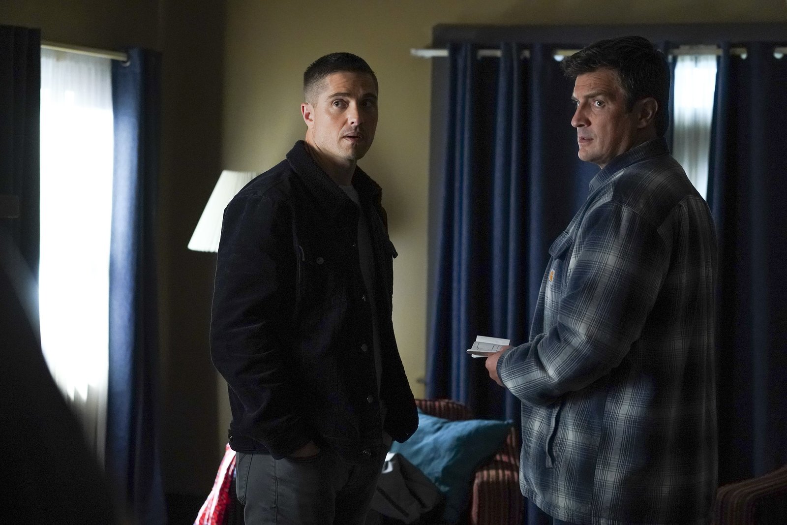 Das ErdbebenL-R: Eric Winter as Tim Bradford, Nathan Fillion as John Nolan.Bild: © 2019 American Broadcasting Companies, Inc. All rights reserved.
