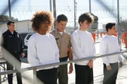 Unter DruckDrei jugendliche Straftäter werden zur Abschreckung durch eine Haftanstalt von John Nolan (Nathan Fillion, l.) und Deputy Sharp (Don Swayze, 2 v. l.) geführt.Bild: © ZDF und Christopher Willard./Christopher Willard