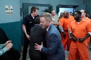 Unter DruckWährend des Besuchs in der Haftanstalt, wird von den gewaltbereiten Gefangenen ein Alarm ausgelöst, sodass John Nolan (Nathan Fillion, r.), Deputy Sharp (Don Swayze, l.) und Nyla Harper (Mekia Cox, M.) sich selbst verteidigen müssen.Bild: © ZDF und Jennifer Clasen.