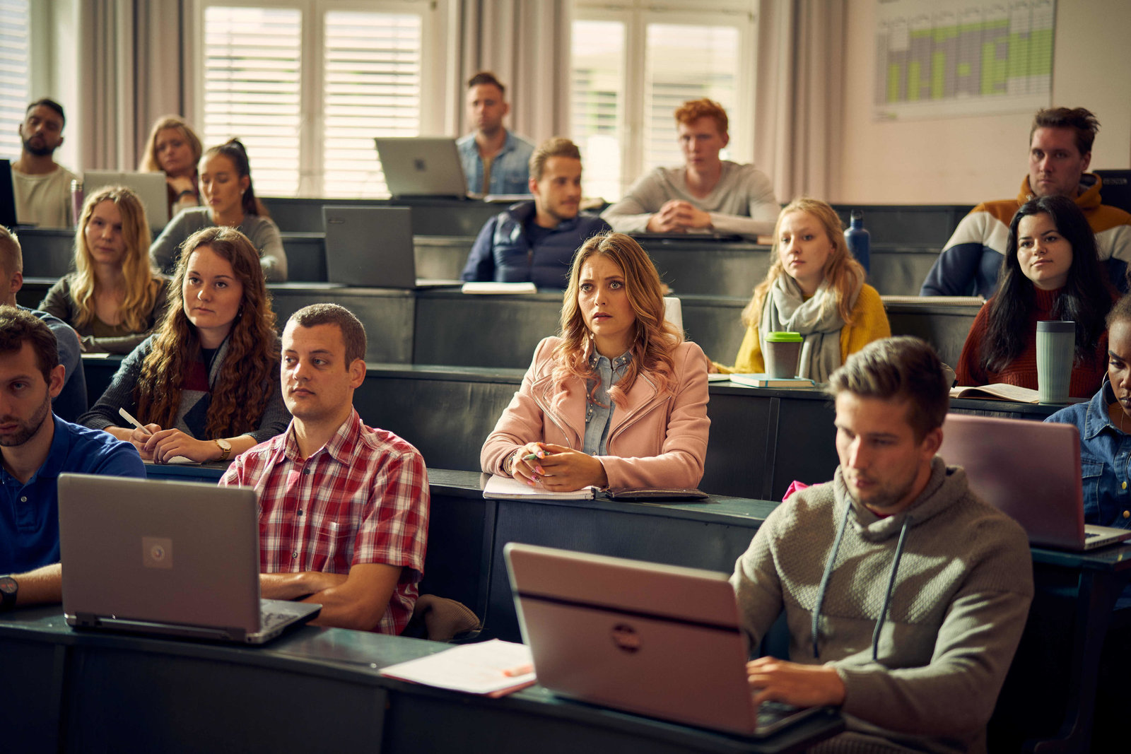 Campussy(v.l.n.r.) Tiffany Pütz (Vivien Sczesny); Silvia Pütz (Milena Dreißig); Nicole Pütz (Hanna Plaß); Ebru (Yasemin Cetinkaya); Dennis Pütz (Anselm Ferdinand Bresgott)Bild: © SAT.1 / Frank Dicks Eigenproduktionsbild frei
