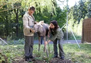 Auf AbwegenARD TIERÄRZTIN DR. MERTENS IV. Staffel mit 13 neuen Folgen, Folge 46, "Auf Abwegen", am Dienstag (11.06.13) um 20.15 Uhr im Ersten. Die Gelenke des kleinen Elches sind geschwollen. Tierärztin Dr. Mertens (Elisabeth Lanz, r.) und Tierpfleger Conny (Thorsten Wolf, l.) rätseln über die Ursache. Susanne vermutet eine Stoffwechselstörung, da das Tier nicht richtig frisst.Bild: © ARD/Rudolf Karl Wernicke
