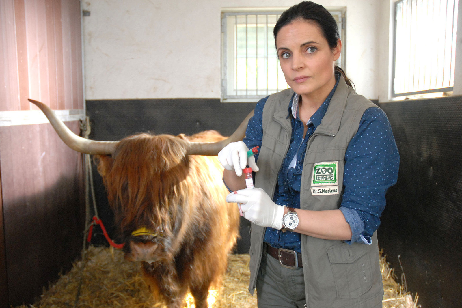 Tierärztin Dr. MertensSusanne Mertens (Christina Plate) hat den Job als Tierärztin im Leipziger Zoo bekommen und steht mit ihrem Kollegen Conny (Thomas Koch) vor einer großen Herausforderung: Der Chimpanse hat Liebeskummer und verweigert die Nahrung.Bild: © MDR/Krajewski