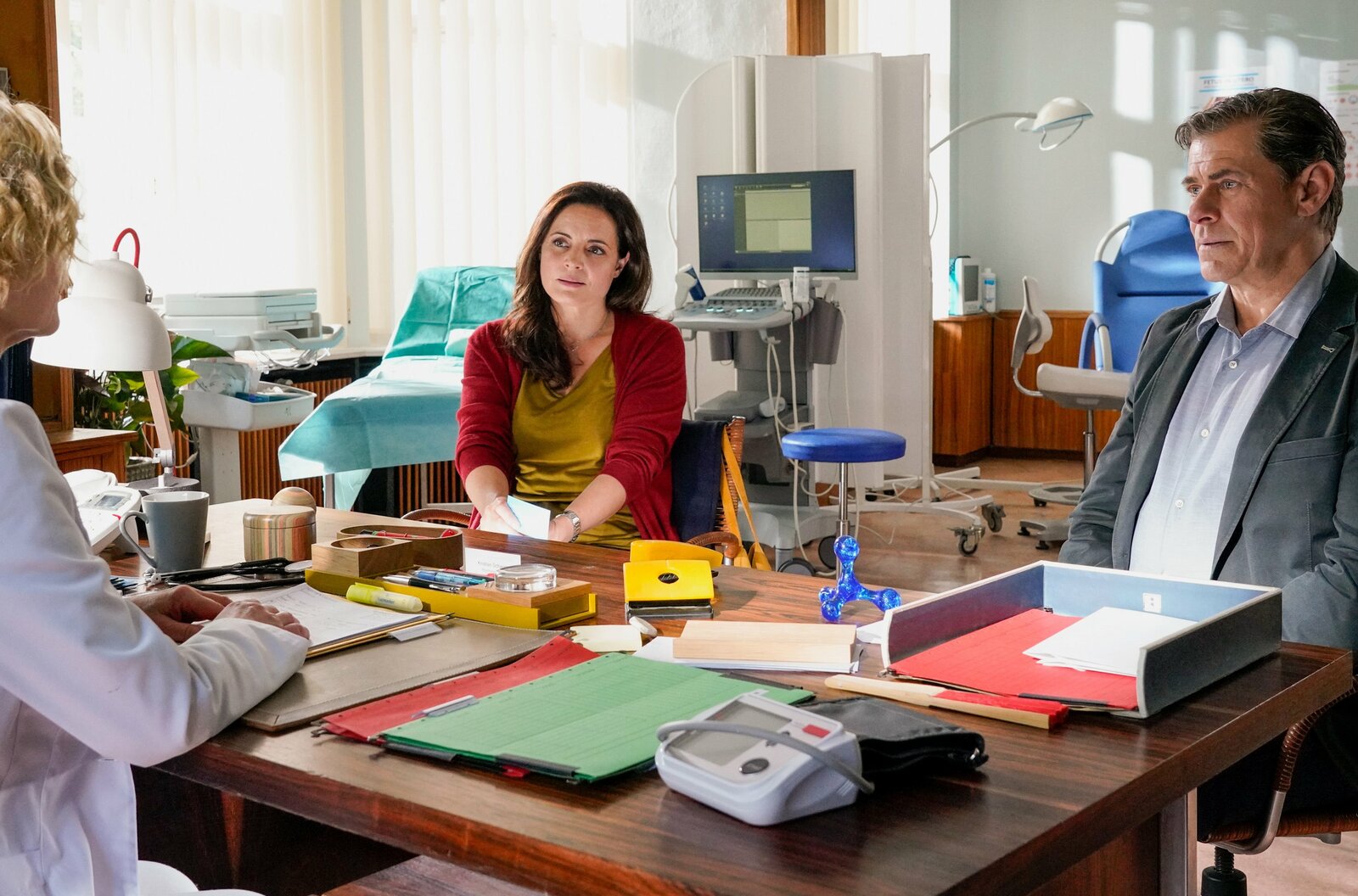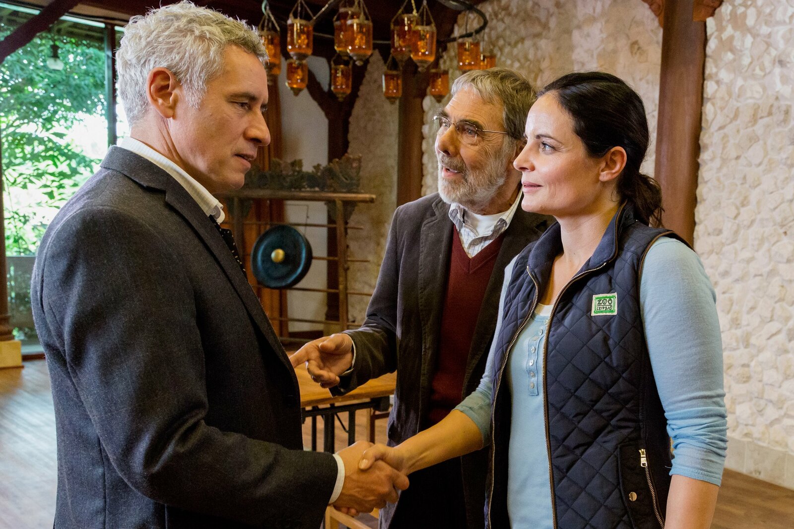 Allgemeine VerunsicherungWolfgang Neubert (Uwe Bohm, r.) erkundigt sich nach Krokodil Nero und möchte das Restgeld für sein Tier bei Zoodirektorin Amal Bekele abholen. Bei allem was vorgefallen ist und er verheimlicht hat, wird er sein Geld nicht bekommen. Tierärztin Susanne Mertens (Elisabeth Lanz, l.) und Assistenzärztin Karoline Schneider (Maxine Kazis, M.) können sich ein bisschen Schadenfreude nicht verkneifen.Bild: © ARD/Steffen Junghans