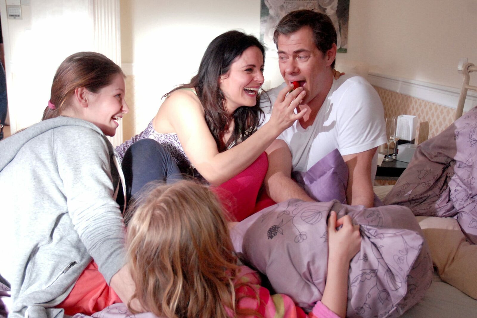 UmzugschaosLuisa (Deborah Mary Schneidermann, l.) hat Angst, dass sie als Pflegekind nach der Trennung von Susanne und Christoph zurück in ein Kinderheim muss und wird von ihrer besten Freundin Paula (Talessa Scheithauer, r.) getröstet.Bild: © MDR/ARD/Steffen Junghans