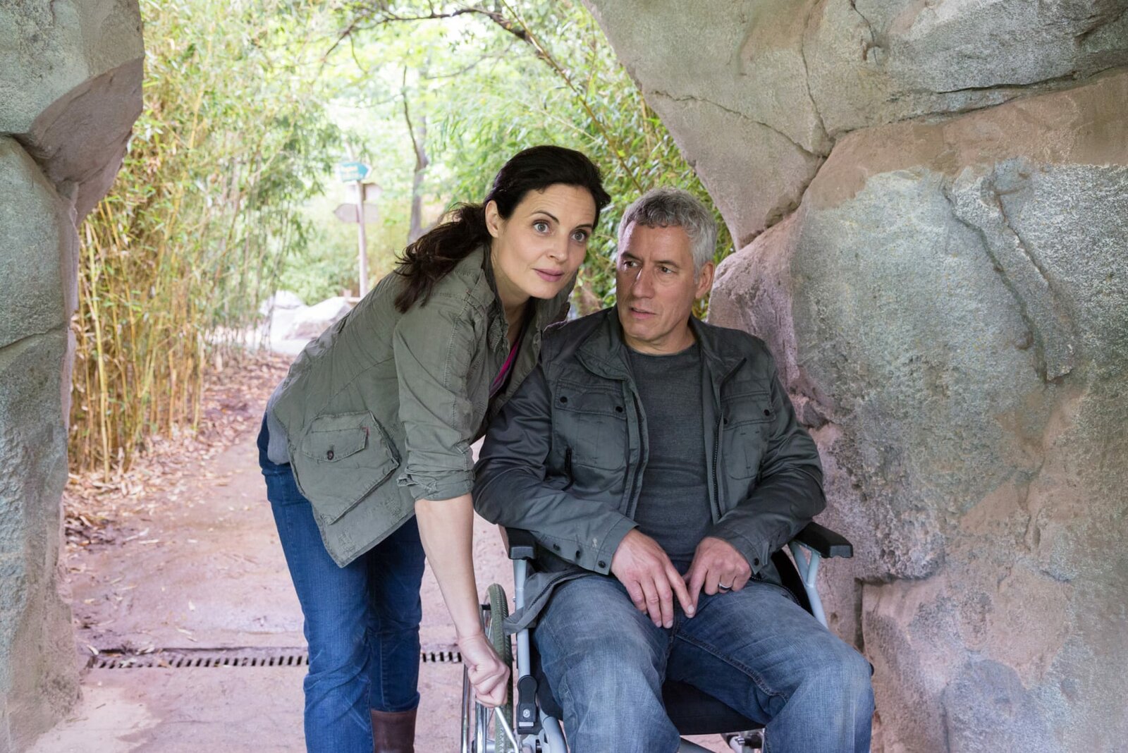 Ein neuer AnfangTierärztin Dr. Mertens (Elisabeth Lanz, l.) hilft Zoodirektor Dr. Blum (Ralph Herforth, r.), der sich verletzt hat, auf unorthodoxe Weise.Bild: © MDR/Steffen Junghans
