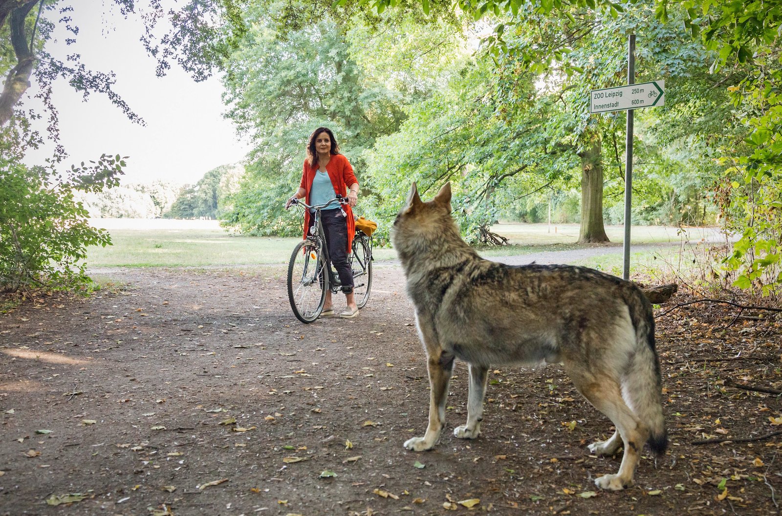 Ein unwiderstehliches AngebotAuf dem Weg zur Arbeit steht der Wolf plötzlich vor Tierärztin Susanne Mertens (Elisabeth Lanz). Susanne ist nicht ganz sicher, ob es ein Wolf ist, weil die sich eigentlich nicht so nah an eine Stadt herantrauen.Bild: © ARD/Steffen Junghans