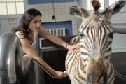 Der Mann mit dem PapageiZebrastute Elsa ist trächtig. Tierärztin Dr. Susanne Mertens (Elisabeth Lanz) sorgt sich um den Gesundheitszustand des Fötus. Dessen Herztöne sind zu schwach und es besteht Lebensgefahr für Mutter und Kind.Bild: © MDR/Christa Köfer