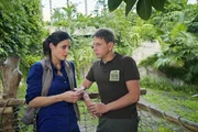 GegenwindTierärztin Dr. Mertens, im Tapirgehege des Leipziger Zoos: Dr. Susanne Mertens (Elisabeth Lanz, l.) und der Tierpfleger Conny (Thorsten Wolf, r.) sprechen über das kranke Tapirweibchen.Bild: © NDR/ARD/Bernd Cramer