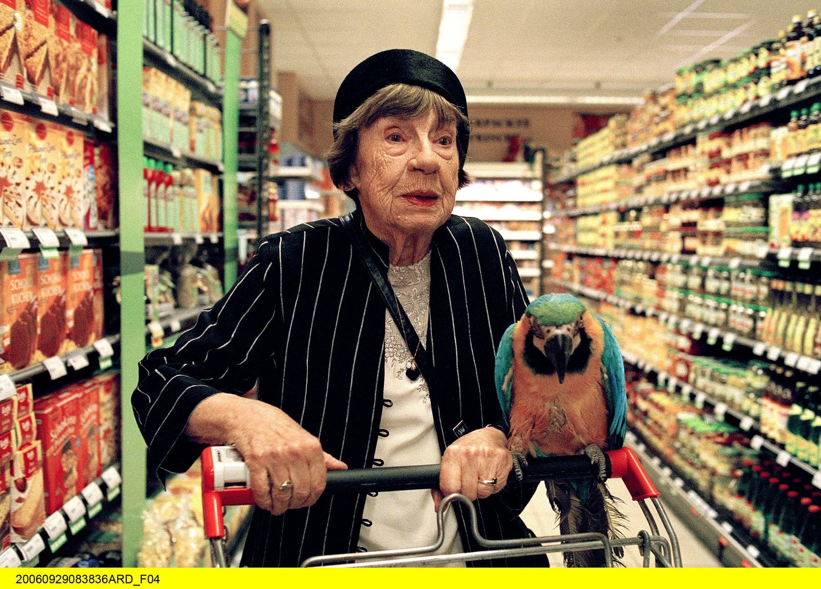 Die UnzertrennlichenMDR Fernsehen TIERÄRZTIN DR. MERTENS I. STAFFEL, FOLGE 5, "Die Unzertrennlichen", am Samstag (05.10.13) um 09:20 Uhr. Klara Schuster (Christel Peters) hat die Papageien-Dame Lora aus dem Zoo entführt und sucht mit ihr im Supermarkt nach geeignetem Futter.Bild: © MDR/ARD/Christa Köfer