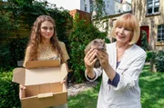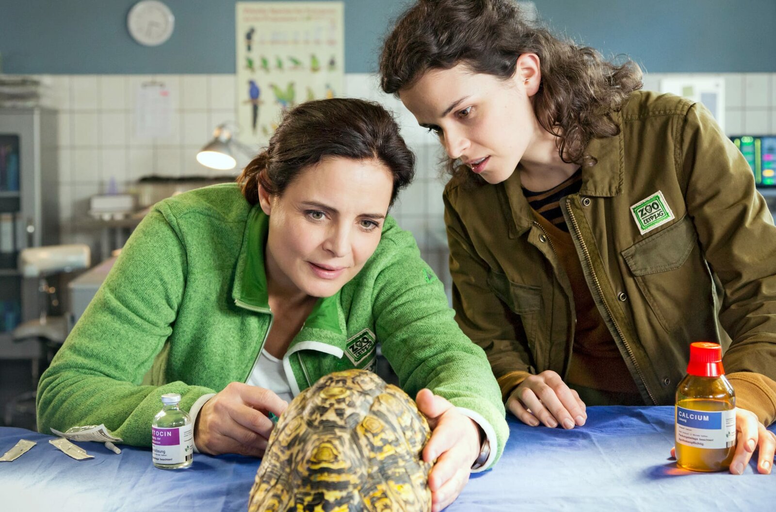 VorfreudeDas Ei ploppt nicht! Tierärztin Susanne Mertens (Elisabeth Lanz, l.) und ihre Assistenzärztin Karoline Schneider (Maxine Kasiz, r.) versuchen bei der Schildkröte die Geburt mit einem Medikament einzuleiten, das eigentlich für Menschen bestimmt ist.Bild: © MDR/ARD/Steffen Junghans