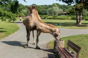 Klare WorteEin Kamel ist aus dem Zoo ausgebrochen und erkundet nun den nahegelegenen öffentlichen Park.Bild: © MDR/Steffen Junghans