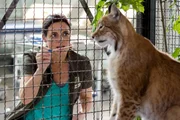 In die FreiheitDas Auge des Luchsweibchens tränt. Tierärztin Dr. Mertens (Elisabeth Lanz) muss das Tier binnen kürzester Frist kurieren, weil es in den nächsten Tagen ausgewildert werden soll.Bild: © MDR/Steffen Junghans