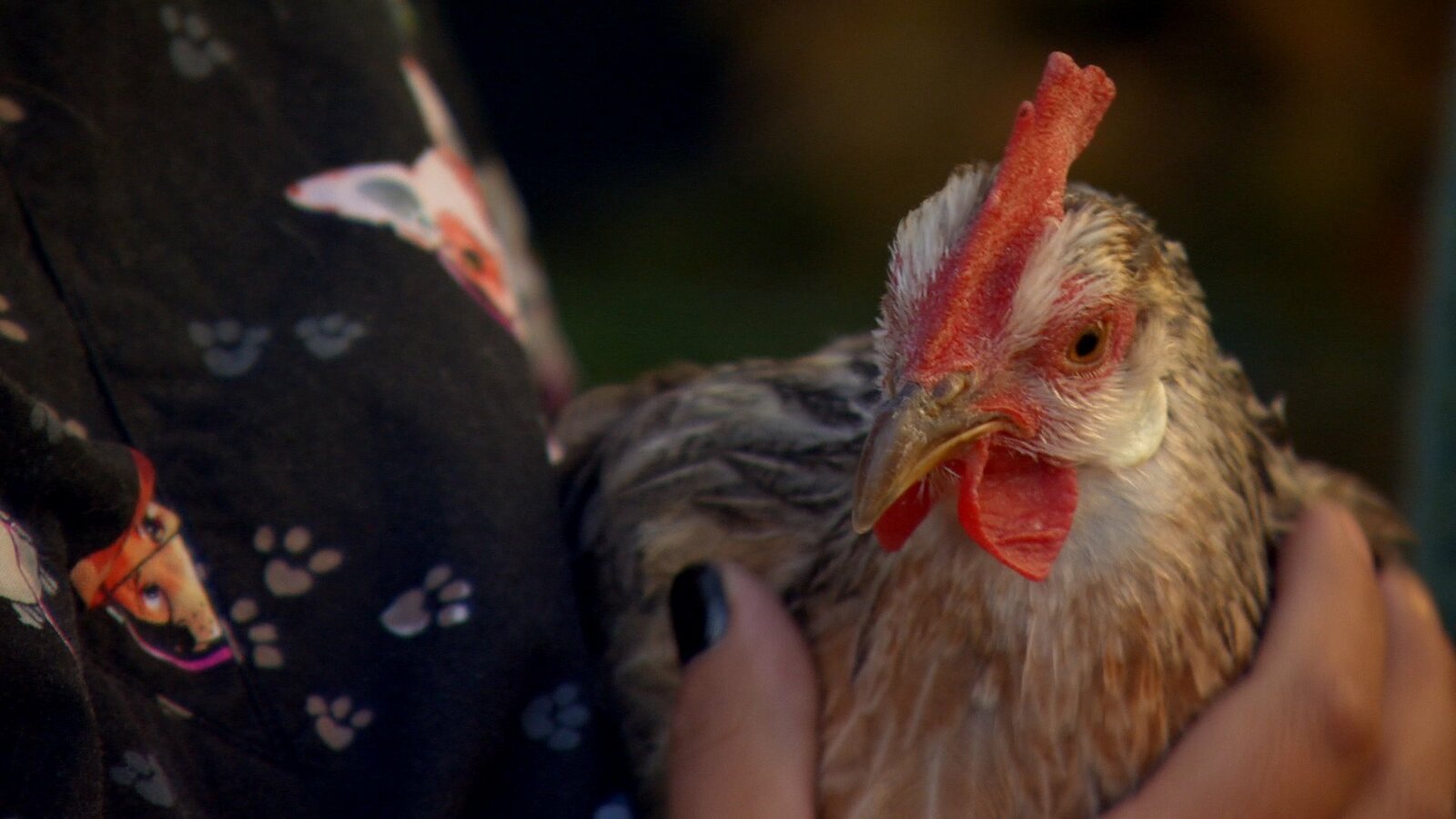 Dyani holding a chicken at the vet.