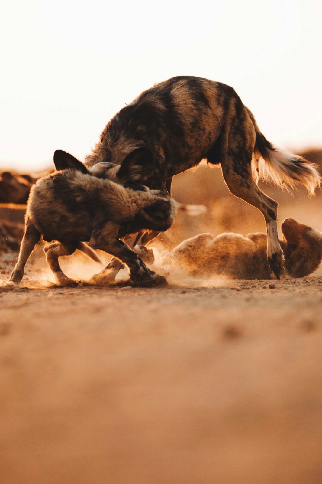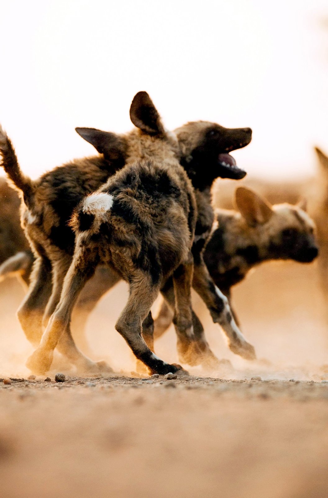 Lyca, die WildhündinBunte Wölfe leben und jagen in engen Familienverbänden und bilden ein strenges Sozialgefüge. In der Rangordnung am höchsten steht das Alphaweibchen, vor ihrem Partner, dem Alpharüden.Bild: © Off The Fence/Russ MacLaughlin / © Off The Fence/Russ MacLaughlin