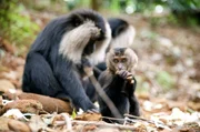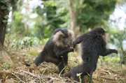 Ravi, der BartaffeZwei Bartaffen lausen sich. Der Verlust ihres Lebensraumes zwingt die Tiere häufig dazu, den Schutz des Kronendaches zu verlassen und auch am Boden auf Nahrungssuche zu gehen.Bild: © ZDF und Varun Alagar Surendran.