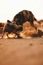 Lyca, die WildhündinWildhunde kämpfen.Bild: © ZDF und Russ MacLaughlin.