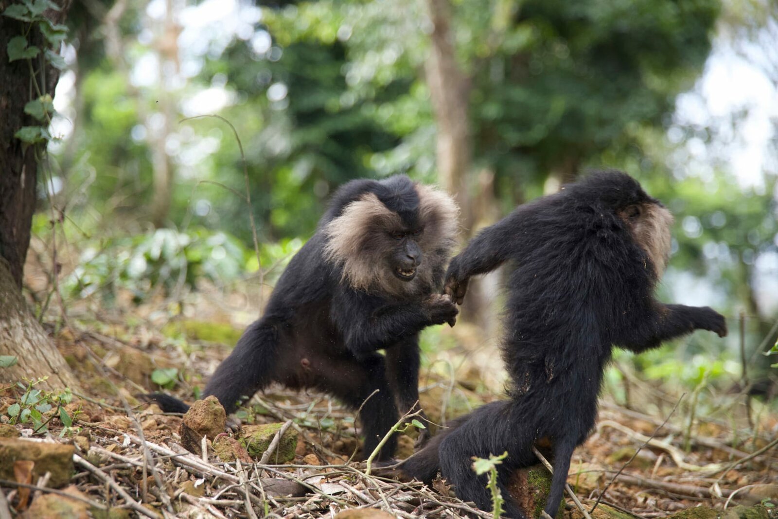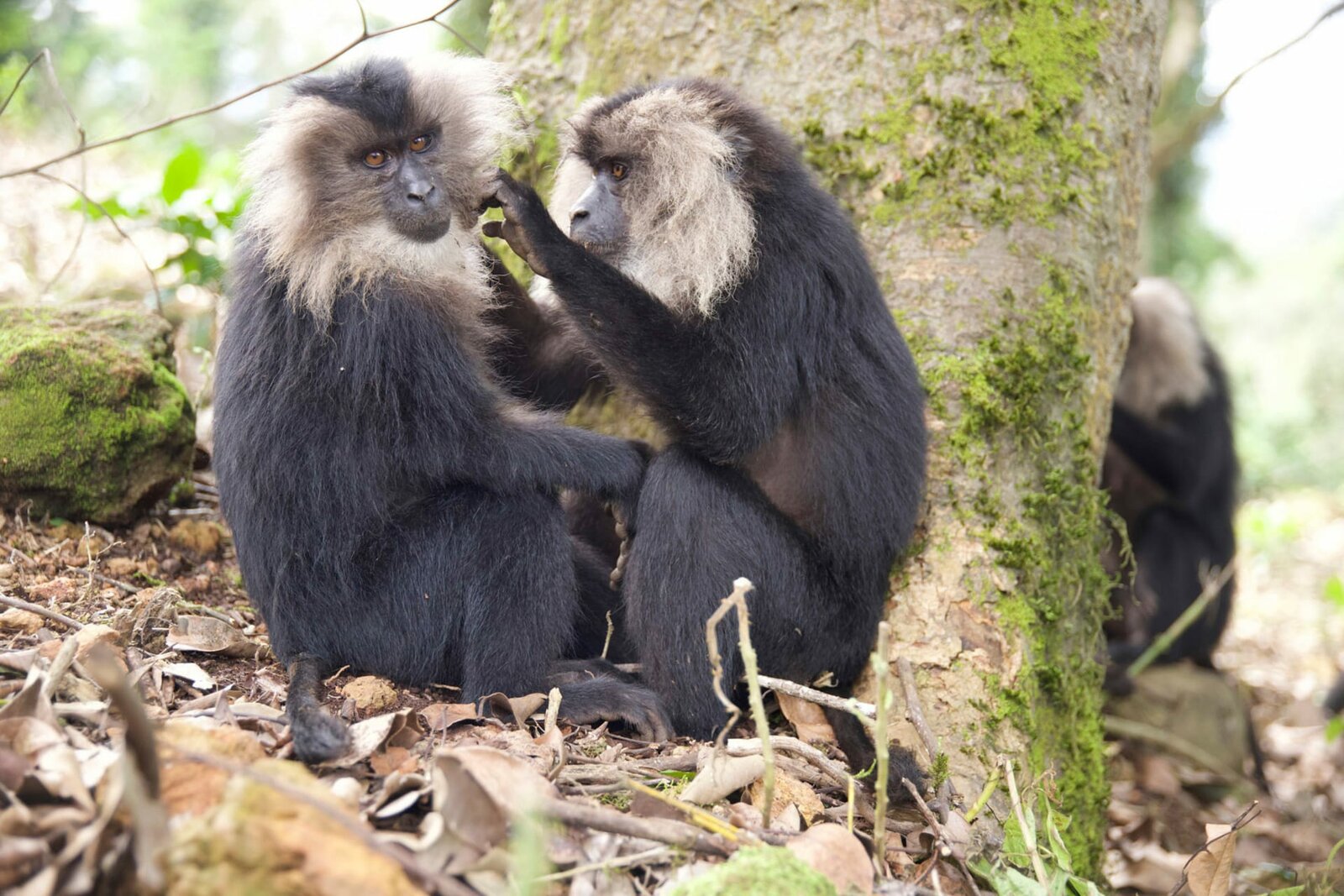 Ravi, der BartaffeZwei Bartaffen lausen sich. Der Verlust ihres Lebensraumes zwingt die Tiere häufig dazu, den Schutz des Kronendaches zu verlassen und auch am Boden auf Nahrungssuche zu gehen.Bild: © Off The Fence/Varun Alagar Surendran / © Off The Fence/Varun Alagar Surendran