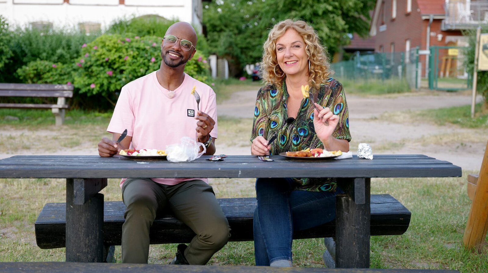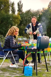 Mit Jürgen von der Lippe auf FehmarnBettina Tietjen und Jürgen von der Lippe beim Grillen auf dem Campingplatz Stover StrandBild: © NDR/beckground TV/Marcus Foag