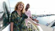 Mit Yared Dibaba auf der Insel PoelFangfrisch am besten! Yared Dibaba und Bettina Tietjen beim inseltypischen Snack. (Bild: © NDR/beckground tv/Marvin Vehring