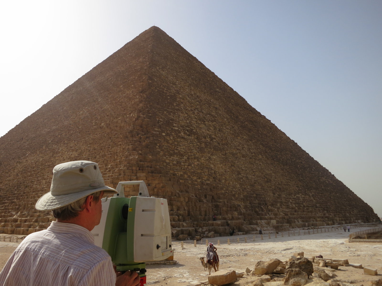 PyramidenMalcolm Williamson überprüft den Fortschritt der Scans mit dem Leica C10 Scanner an der großen Pyramide von Gizeh.Bild: © ZDF und Alex Rowson