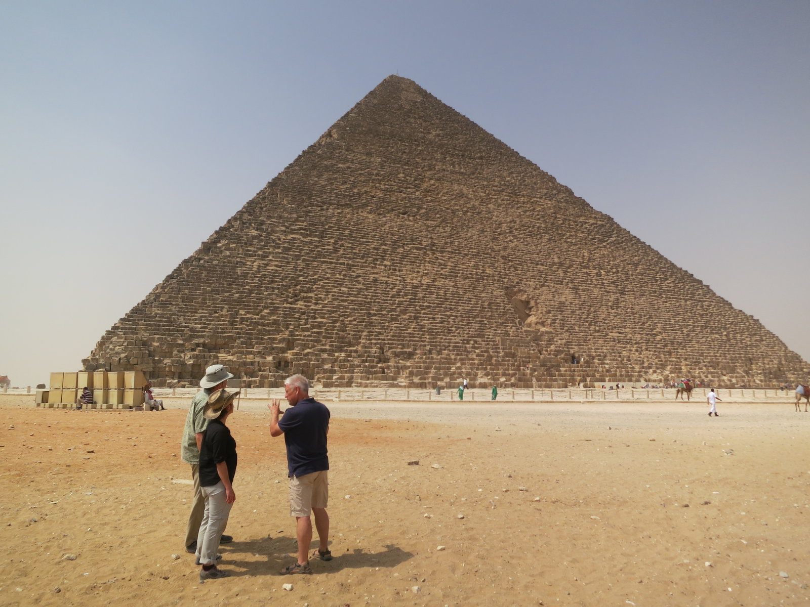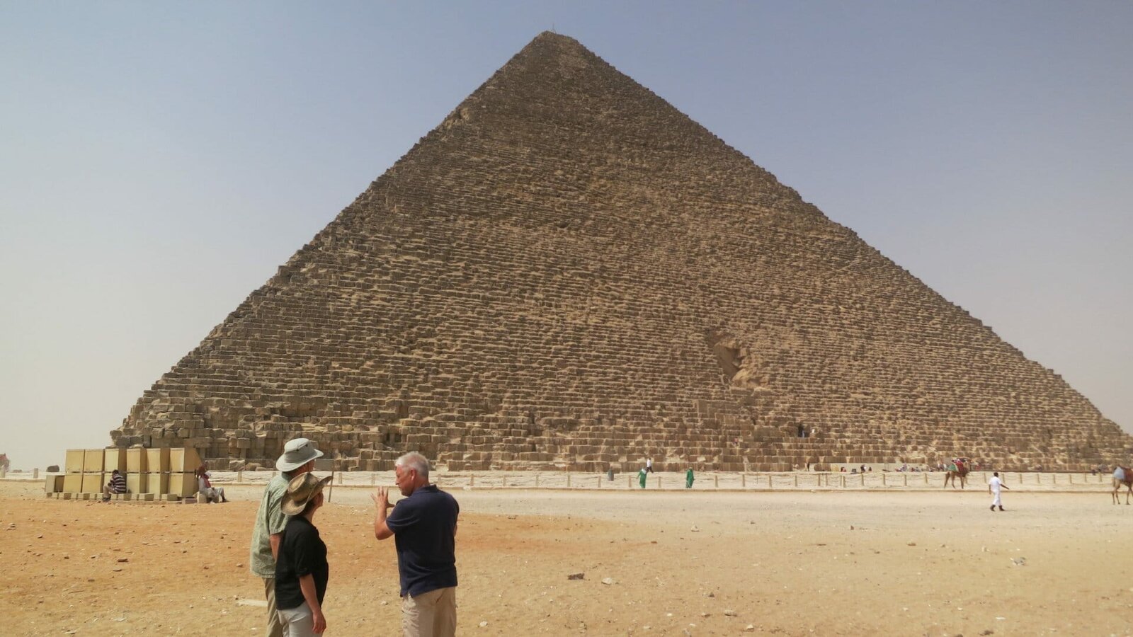PyramidenCaitlin Stevens, Malcolm Williamson und Steve Burrows an der großen Pyramide von Gizeh.Bild: © ZDF und Alex Rowson