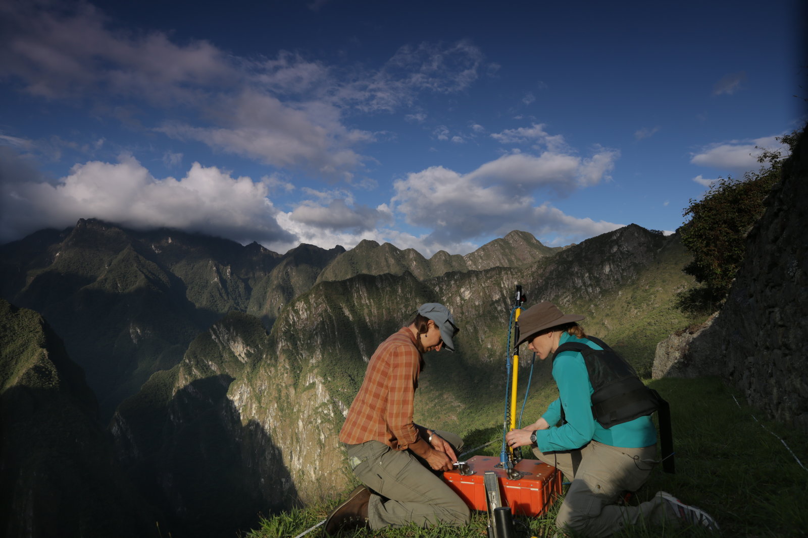 Machu PicchuEileen Ernenwein und Katie Simon mit GPR-Kit auf den Terrassen von Machu Picchu.Bild: © ZDF und Alex Rowson