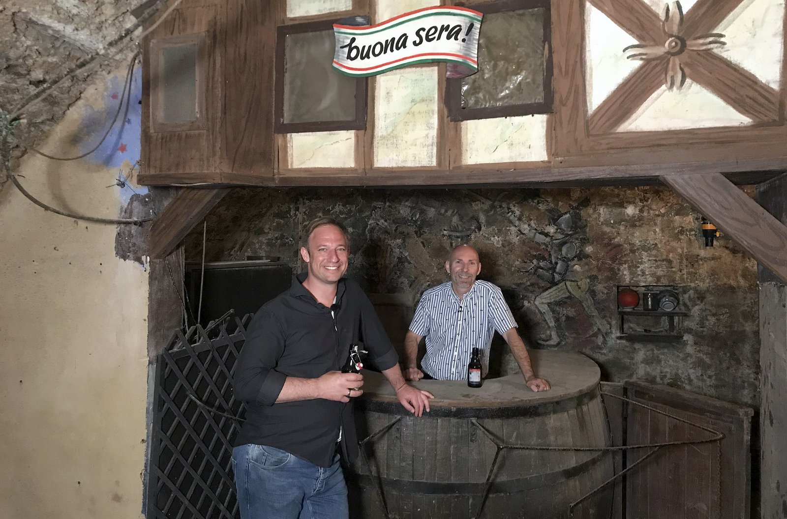Hofheim am Taunus hautnah!Tobi Kämmerer (links) mit Andreas Friedrich, unter dessen Haus sich früher mal eine Kneipe befand.Bild: © HR/Johanna Mihm