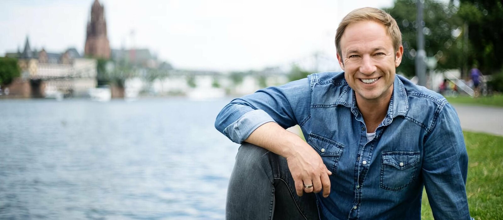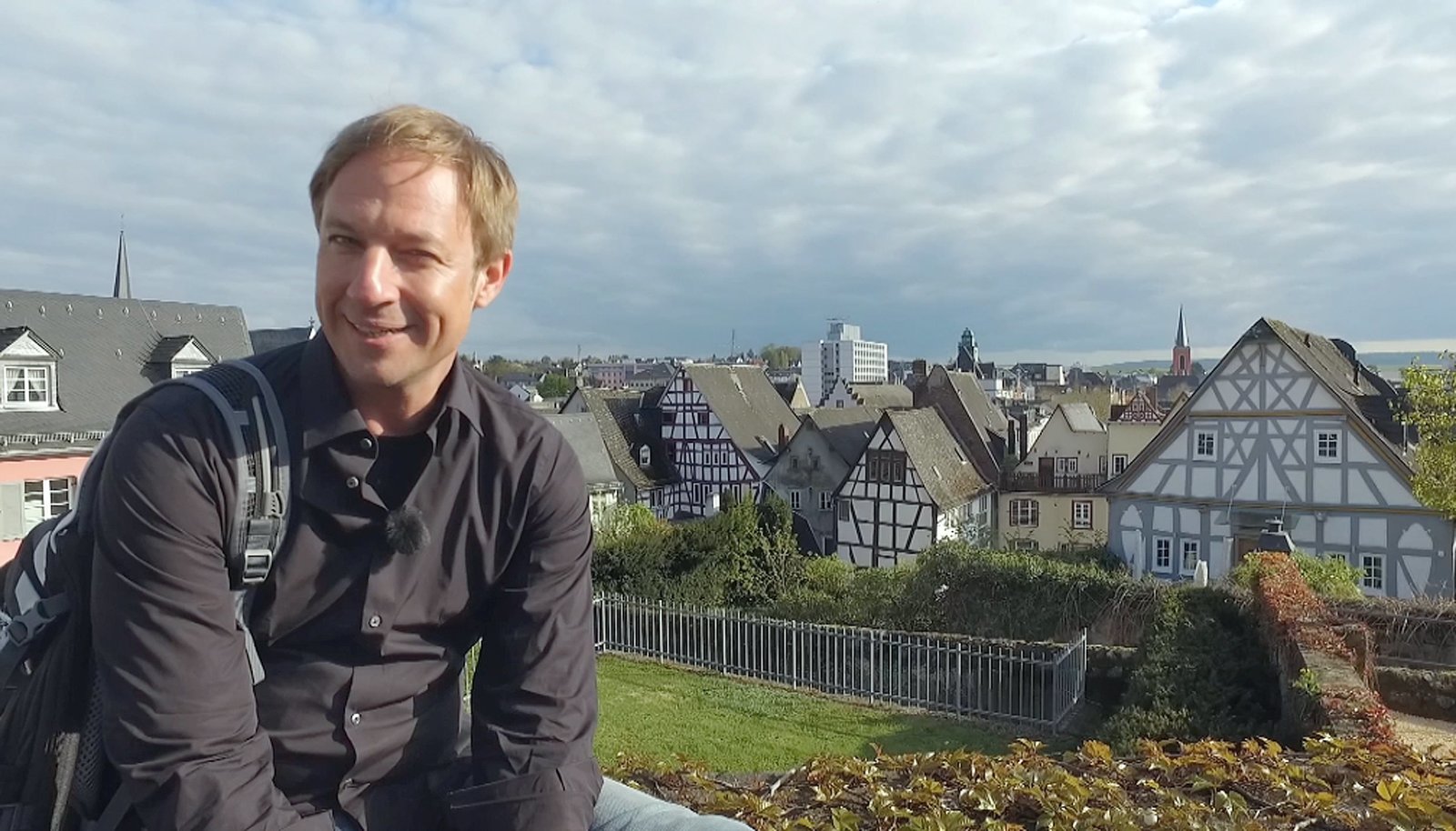 Tobias Kämmerer vor der Limburger Altstadt.Bild: © HR/Friso Richter