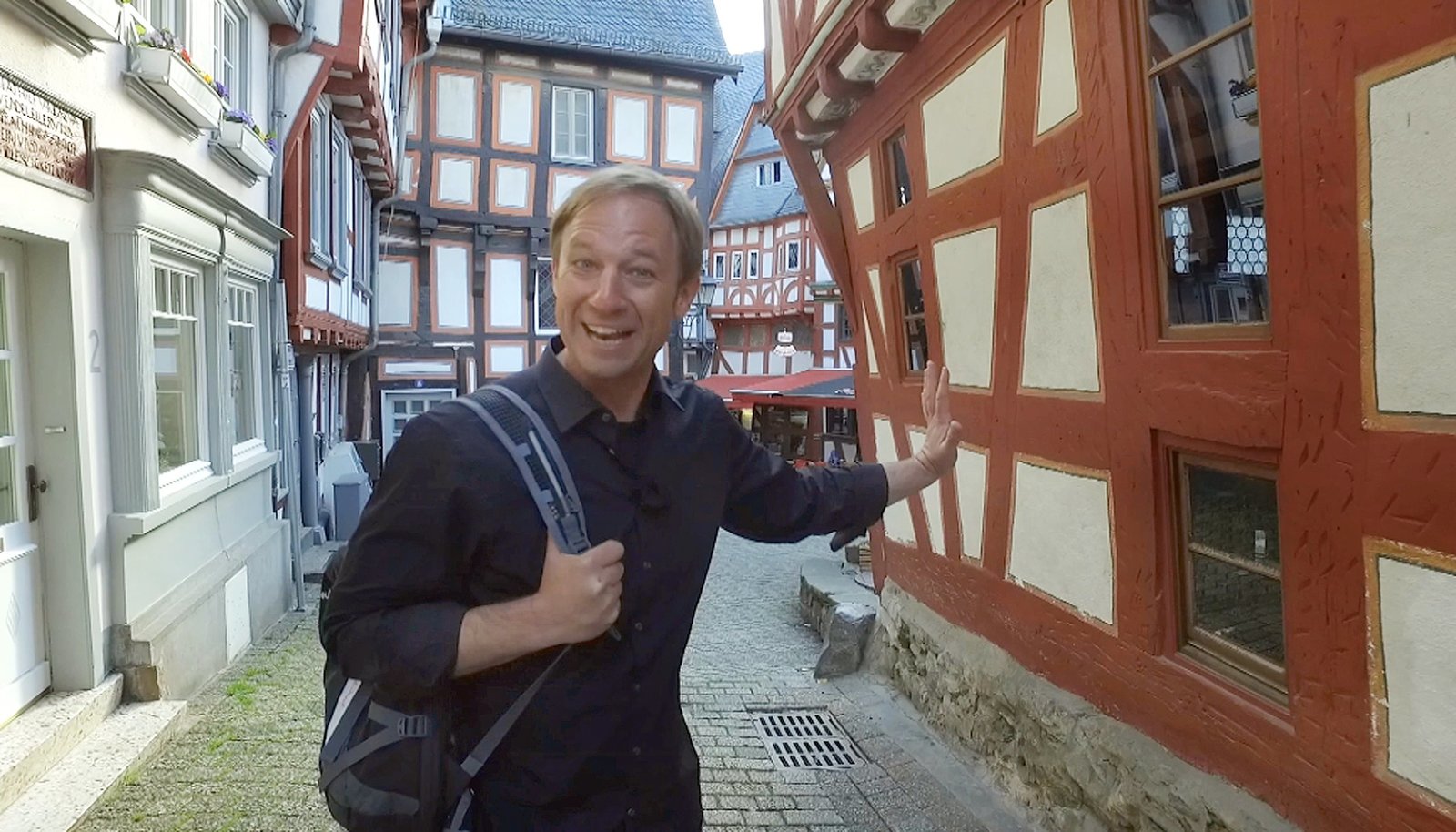 Tobias Kämmerer zu Fuß durch die Limburger Altstadt.Bild: © HR