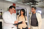 KüchenkunstDr. Torres (Bruno F. Apitz, li.) informiert Jose Arrabal (Gregor Bloeb) und Elena (Edita Malovcic) über die genauen Umstände, unter denen eines der Opfer zu Tode kam.Bild: © Bayerisches Fernsehen
