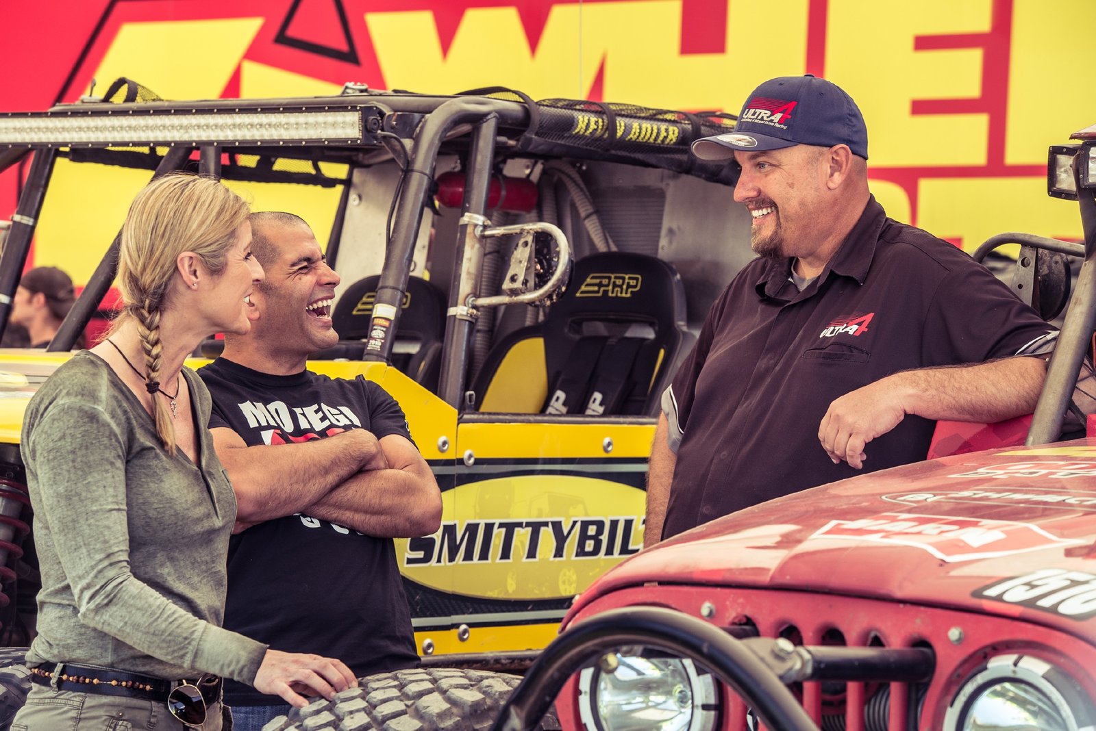 Series 24, Episode 1Sabine Schmitz und Chris Harris (M.) sprechen mit Dave Cole, dem Gründer des "King of the Hammers".Bild: © MG RTL D / BBC 2017