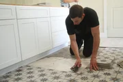 Tarek der GartenkönigTarek legt Hand an und verpasst der Küche neue Fliesen, die sie dringend nötig hat. Ob das Design auch den potenziellen Käufern gefallen wird?Bild: © 2017,HGTV/Scripps Networks, LLC. All Rights Reserved Lizenzbild frei