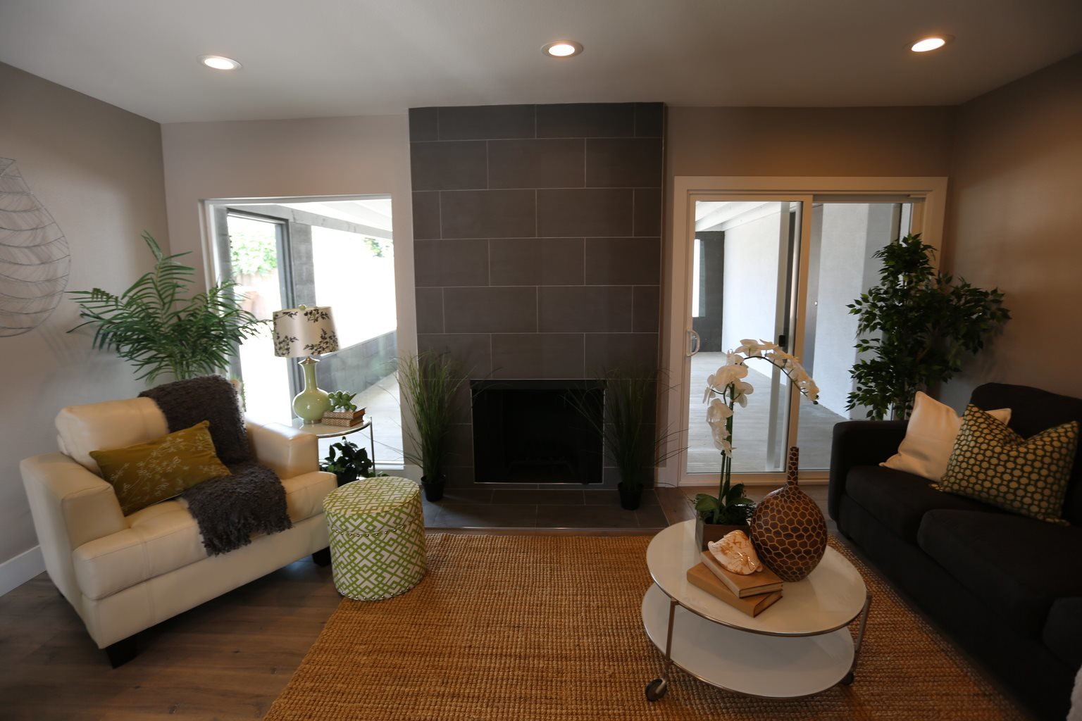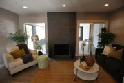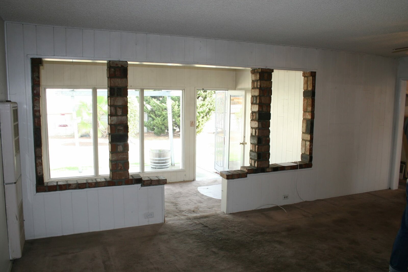 Die Miniatur-KücheDer Kaminbereich ist kaum wiederzuerkennen: Der Kamin wird nun von zwei großen Fenstern eingerahmt, die dem Wohnbereich viel Licht spenden. Trotzdem lädt das Zimmer zu gemütlichen Abenden vor dem Kamin ein. Ob das auch die potenziellen Käufer so sehen?Bild: © 2016,HGTV/Scripps Networks, LLC. All Rights Reserved Lizenzbild frei