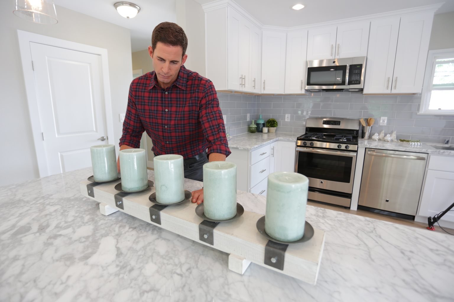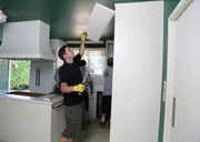Das versteckte FensterDie fertige Küche ist kaum wiederzuerkennen. Tarek verpasst seinem Werk mit ein paar Dekorationen noch den letzten Feinschliff ...Bild: © 2016,HGTV/Scripps Networks, LLC. All Rights Reserved Lizenzbild frei