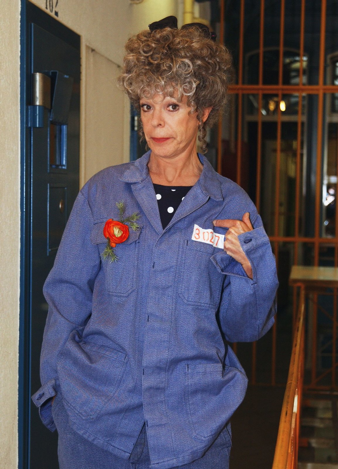 Frau Iseli ist im Knast gelandet:Birgit Steinegger als Frau Iseli (Copyright SRF/Merly Knörle)Bild: © SRF/Merly Knörle