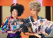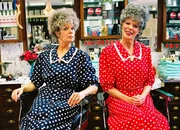 Frau Iseli und Nachbarin Frau Schrupatelli machen Schlagzeilen in der Modewelt: Birgit Steinegger als Frau Schrupatelli, Birgit Steinegger als Frau IseliBild: © SRF/Heinz Stucki