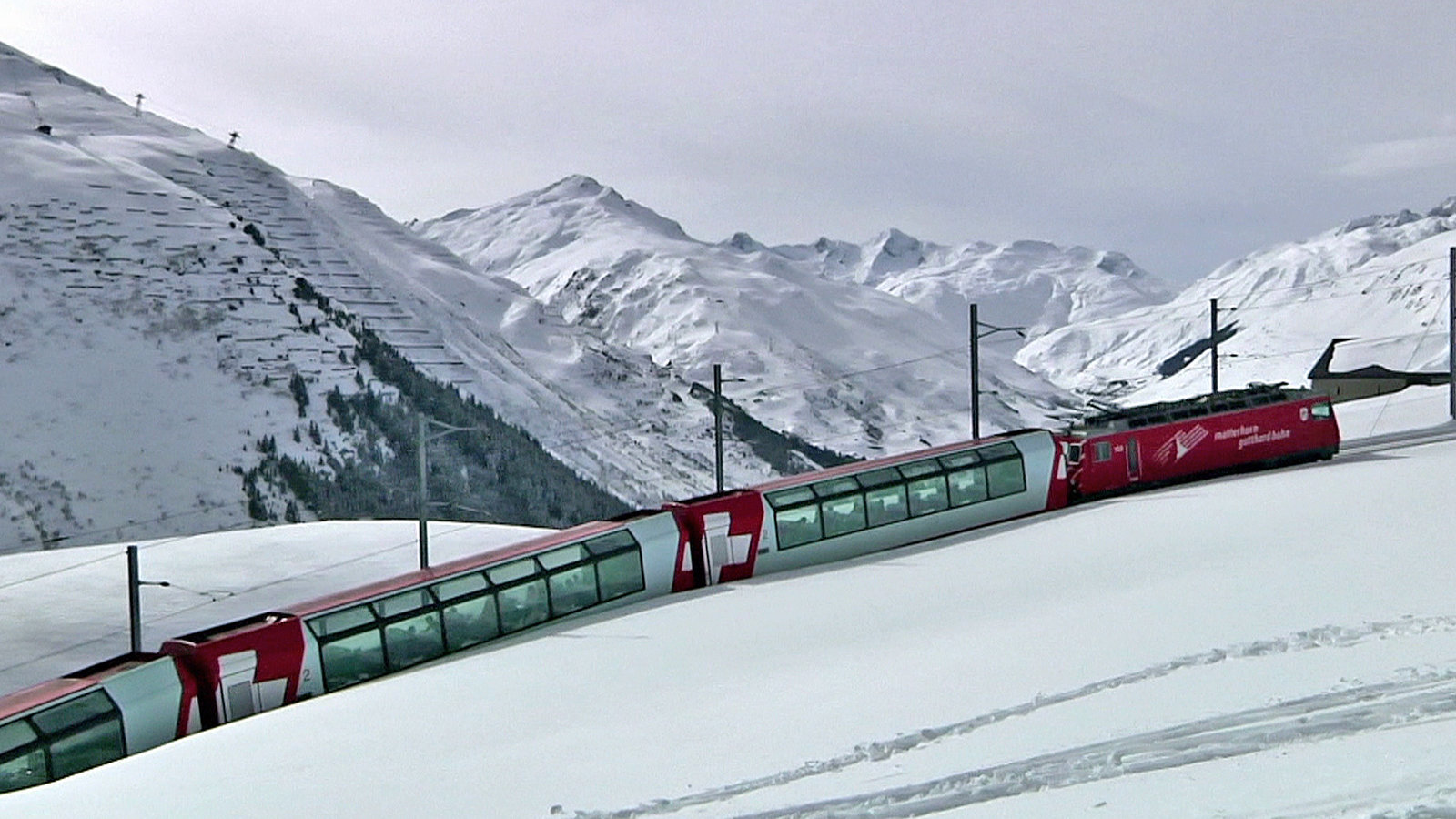 Der Glacier Express - Im Panoramazug durch die AlpenDank der Panoramawagen können die Passagiere die sagenhafte Aussicht ungehindert genießen.Bild: © N24 Doku