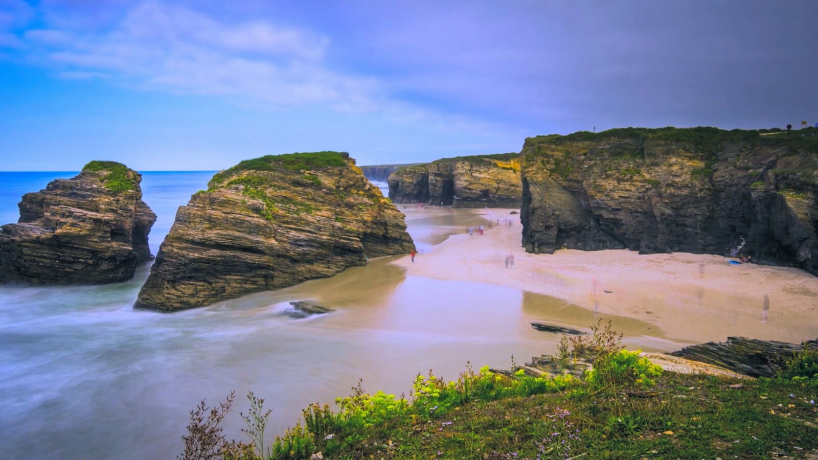 Transcantabrico ClásicoWegen seiner unglaublichen Felsformationen wird der Strandabschnitt in Galizien auch „Strand der Kathedralen“ genannt.Bild: © N24 Doku