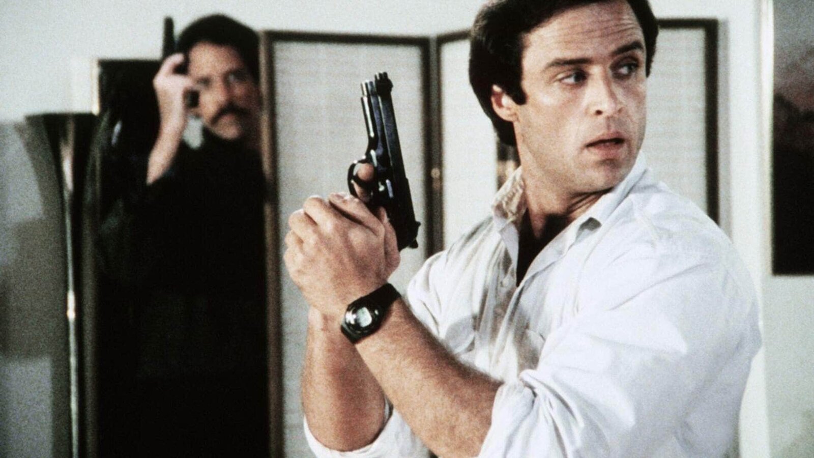 Der schleichende TodNick (Joe Penny, r.) hat sich in höchste Gefahr begeben: Er durchsucht die Wohnung eines brutalen Killers.Bild: © RTL Crime