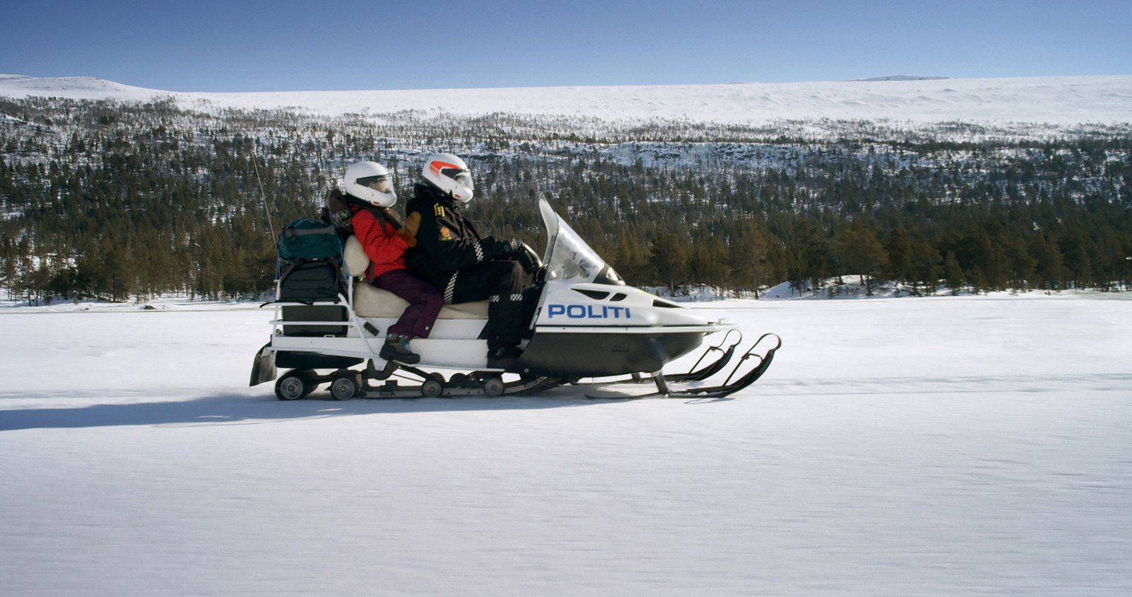 Das MedaillonMit dem Skido ihres Großvaters Besten (Reidar Sörensen) fährt Nora (Naomi Hasselberg Thorsrud, li.) zu ihrer neuen Schule.Bild: © NDR/NordicStories
