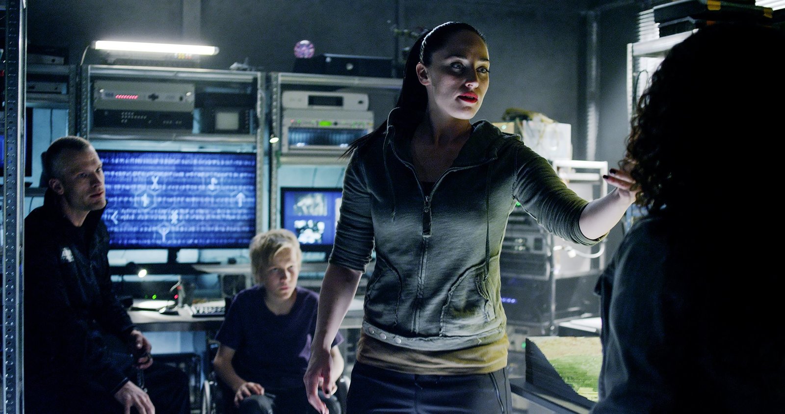 Falsche FreundeNora (Naomi Hasselberg Thorsrud, rechts, verdeckt) konfrontiert Charlotte (Sara Yttre, vorn), Johanna (Lotte Kvalheim, Mitte) und Lea (Emma Bakke) mit ihrem Plan, den wahren Absender der Drohnachrichten zu ermitteln.Bild: © NDR/NordicStories