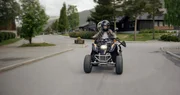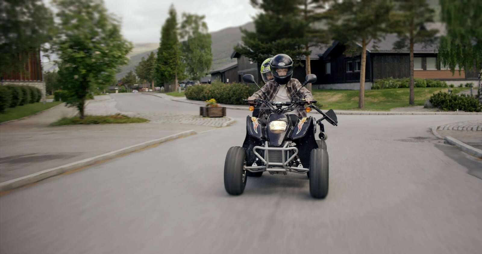 Simon unter VerdachtAuf dem Spezialbike rasen Lars (Bjørnar Lysfoss Hagesveen, vorn) und Simon (Oskar Lindquist) zur Kampfsporthalle.Bild: © NDR/NordicStories