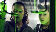 Emma in GefahrNora (l.) und Simon (r.) überwinden eine Laserschranke.Bild: © NDR
