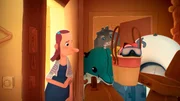 WaschtagTrude muss sich etwas einfallen lassen, denn das Tier mag sich gar nicht in der Wanne waschen.Bild: © WDR/Studio Soi