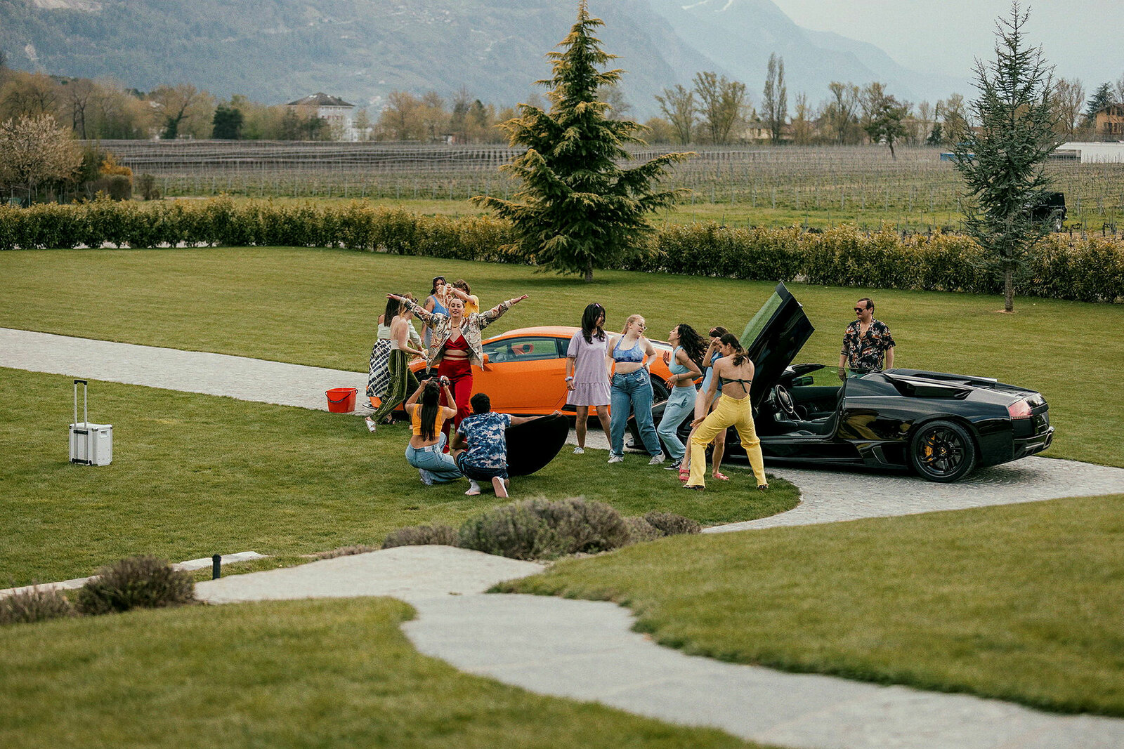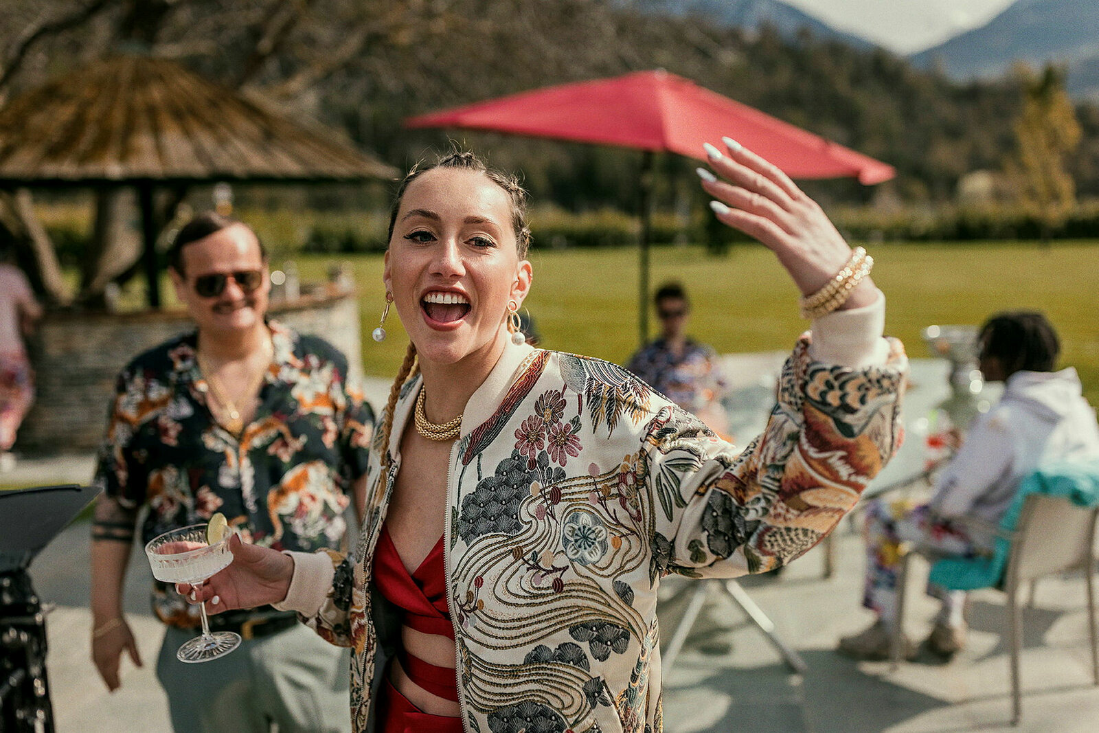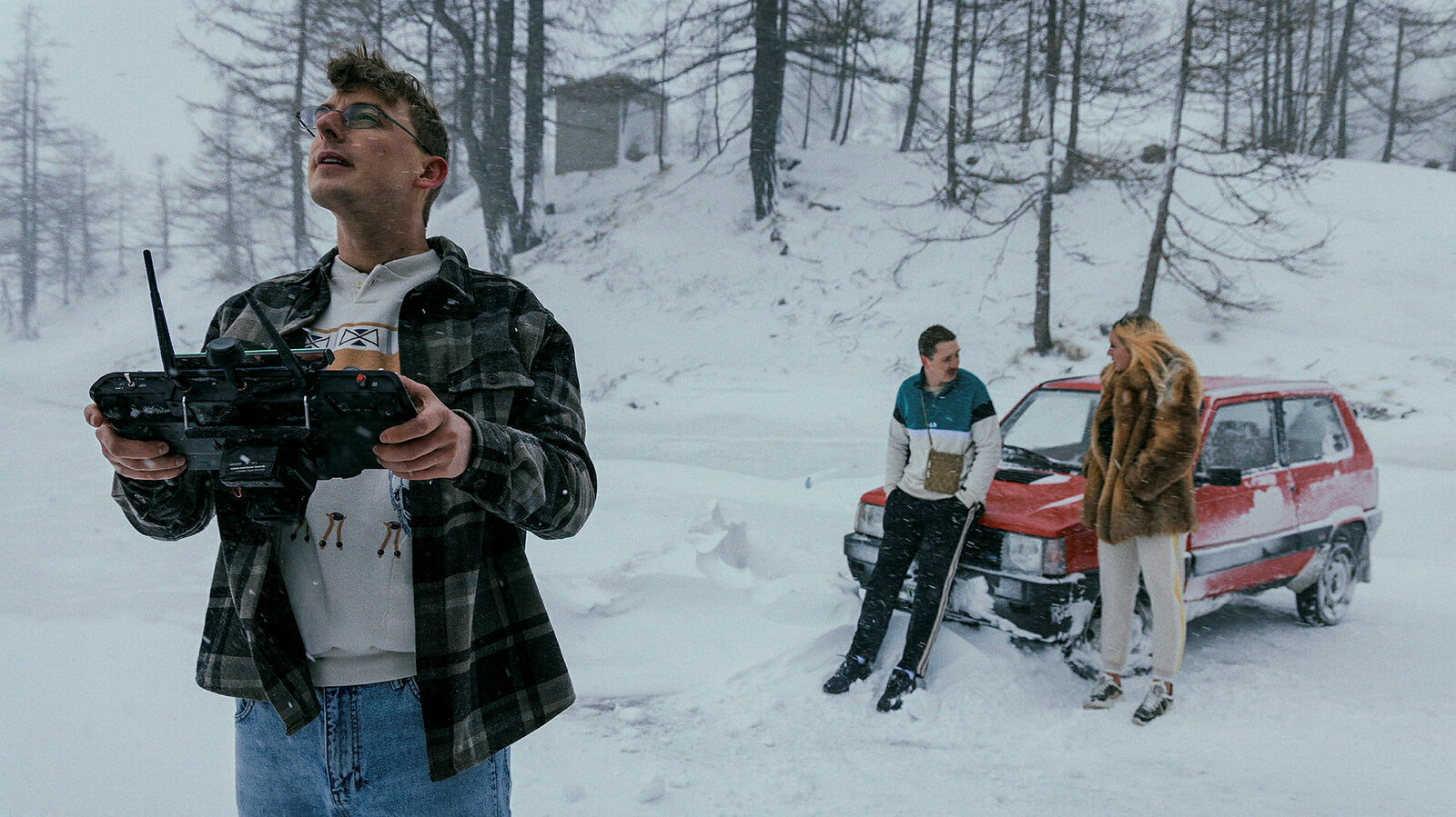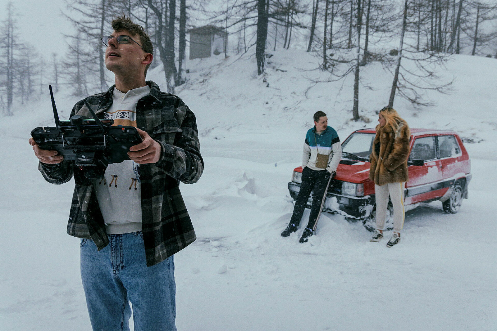 ForälluTschugger Staffel 1 Shining Film AG Rafael Kistler Johannes Bachmann, Arnold B. Bucher, David Constantin, Rafael Kistler, Leandro Russo, Mats Frey 2021 Folge 4 Hauptmotiv 3 Dragan Vujic als Pirmin, Lena Furrer als Regina (und Statisten) SRF/Dominic SteinmannBild: © SRF2