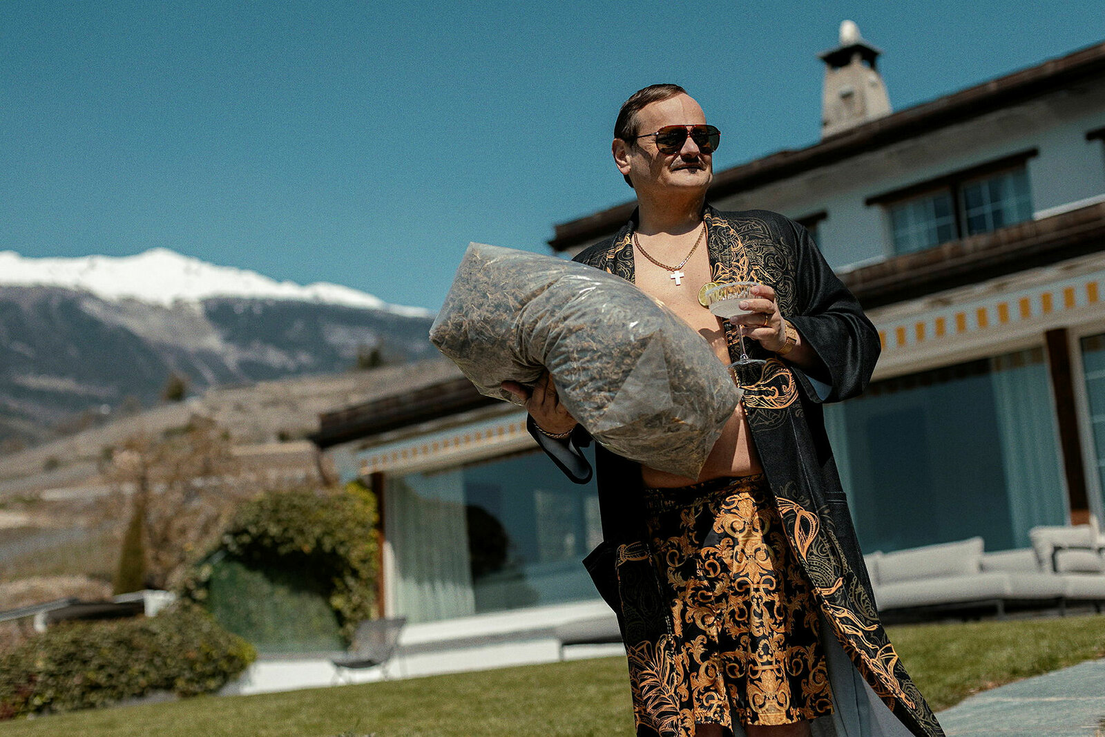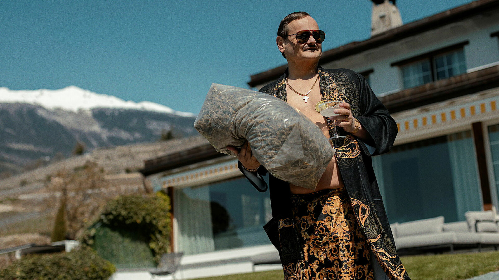 SmetterlingTschugger Staffel 1 Shining Film AG Rafael Kistler Johannes Bachmann, Arnold B. Bucher, David Constantin, Rafael Kistler, Leandro Russo, Mats Frey 2021 Folge 1 Hauptmotiv 3 Dragan Vujic als Pirmin SRF/Dominic SteinmannBild: © SRF2