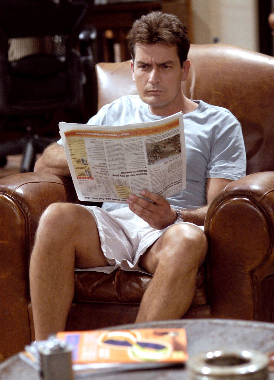Eine Flasche Wein und ein PresslufthammerCharlie hat ausnahmsweise einen ruhigen Moment gefunden: Charlie Sheen als Charlie HarperBild: © Copyright SRF/Warner Bros.